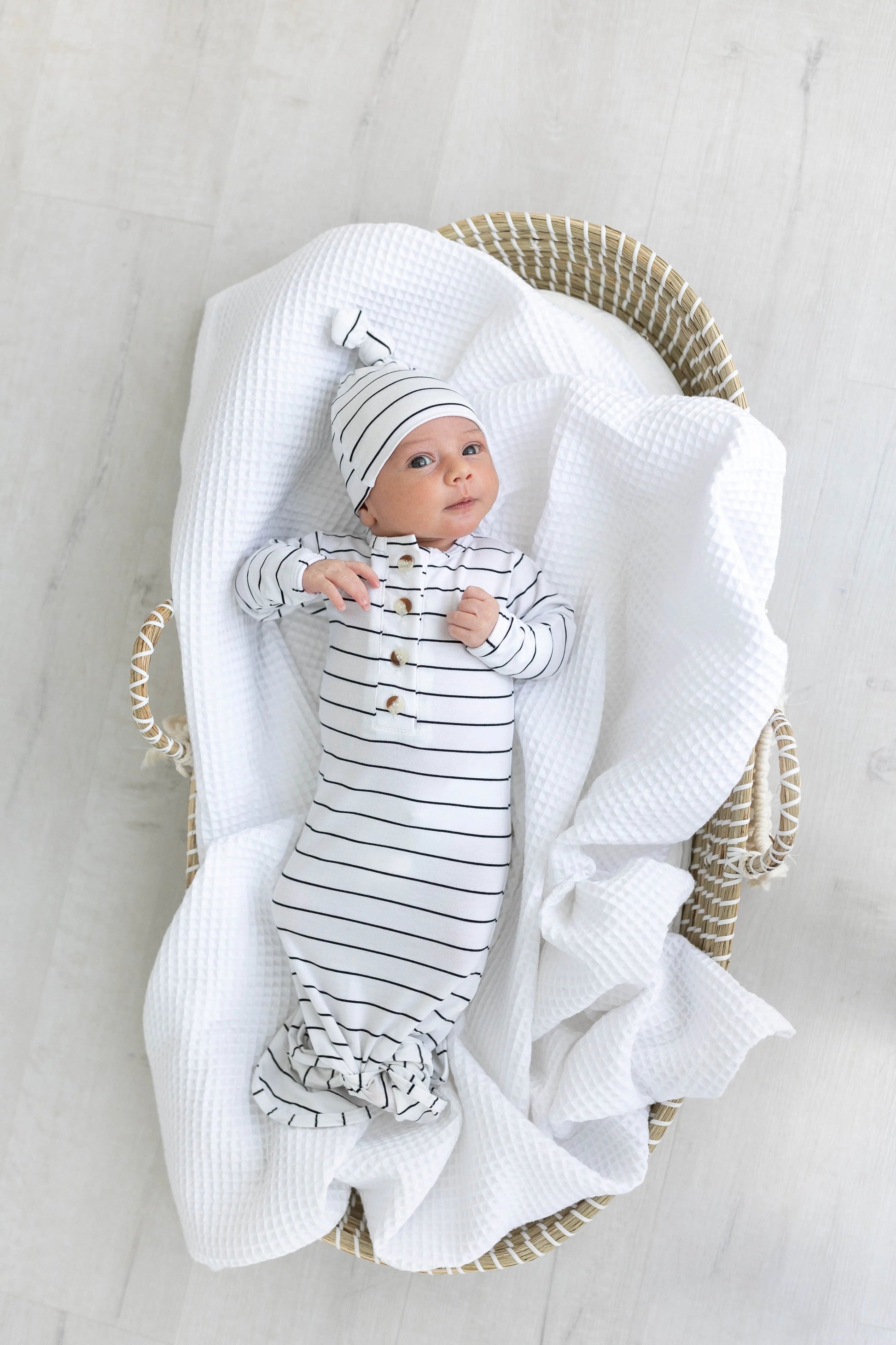 Knotted Baby Gown Set - Black Stripes (Newborn-3 months)